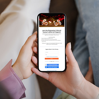 Share the magic of the Polynesia Cultural Center and get rewarded! Sign up for free, create your personalized link or QR code, and share it with your friends and family. When they purchase tickets using your link, you’ll both receive a $15 gift card! It’s a win-win — spread the aloha, enjoy the rewards, and help share the beauty and spirit of Polynesia with the world.